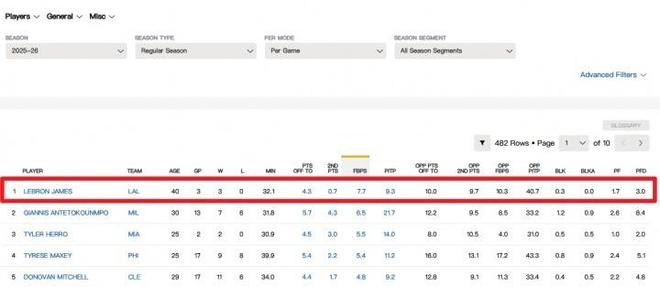 回归三场比赛之后,詹姆斯本赛季到目前为止的场均快攻得分,已经一路冲到了7.7分,超越场均6.5分快攻得分的字母哥排在了联盟第一。三场打成联盟第一,力压联盟里其他所有的超级巨星,这就是詹姆斯下快攻的能力,绝对是当今联盟空前绝后独一份。