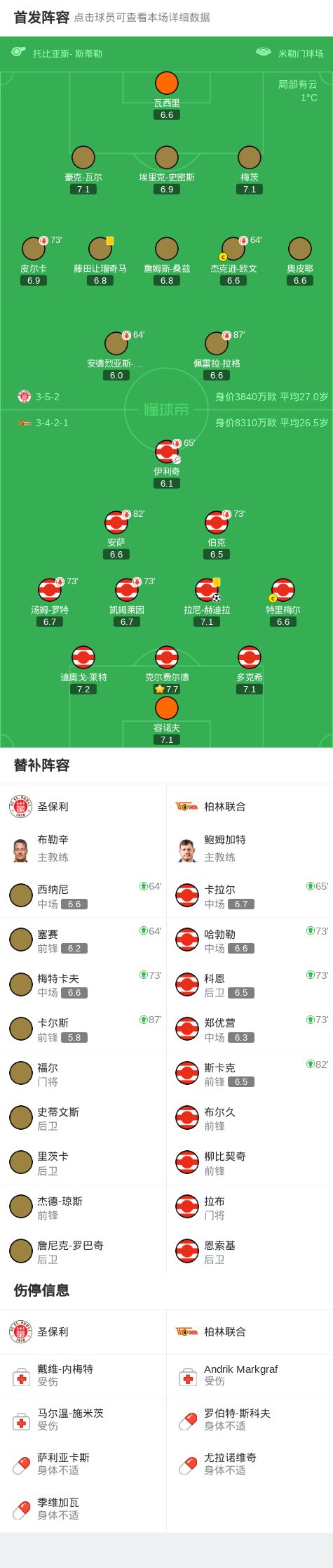 - 柏林联合1-0圣保利,拉尼-赫迪拉制胜球